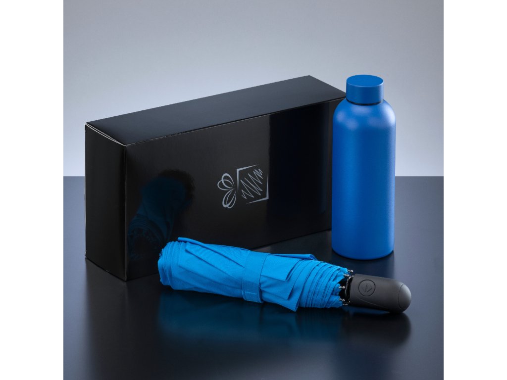 Praktická sada pro lidi na cestách, která zahrnuje Nordic termohrnek a skládací deštník z kolekce Cambridge.\nNordic termoska je vyrobena z vysoce kvalitní nerezové oceli 18/8 od korejské společnosti POSCO. Odolná vůči kyselinám a uhličitanům, poskytuje trvanlivost a elegantní vzhled. Pevná prášková povrchová úprava zajišťuje odolnost proti mechanickému poškození a bezpečný úchop. Skládací deštník s funkcí DAS (automatický systém otevírání a zavírání) je díky systému proti větru mechanicky odolný.\nSada je k dispozici v různých barvách. Balená v elegantní černé dárkové krabičce.Doplňkové parametry