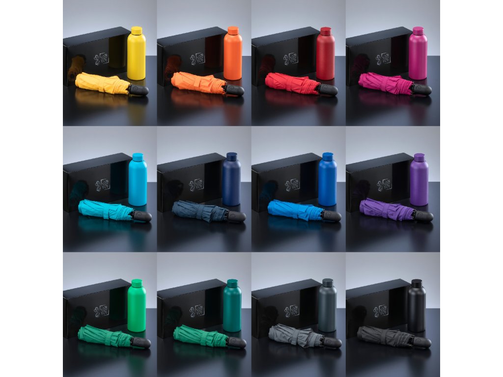 Praktická sada pro lidi na cestách, která zahrnuje Nordic termohrnek a skládací deštník z kolekce Cambridge.\nNordic termoska je vyrobena z vysoce kvalitní nerezové oceli 18/8 od korejské společnosti POSCO. Odolná vůči kyselinám a uhličitanům, poskytuje trvanlivost a elegantní vzhled. Pevná prášková povrchová úprava zajišťuje odolnost proti mechanickému poškození a bezpečný úchop. Skládací deštník s funkcí DAS (automatický systém otevírání a zavírání) je díky systému proti větru mechanicky odolný.\nSada je k dispozici v různých barvách. Balená v elegantní černé dárkové krabičce.Doplňkové parametry