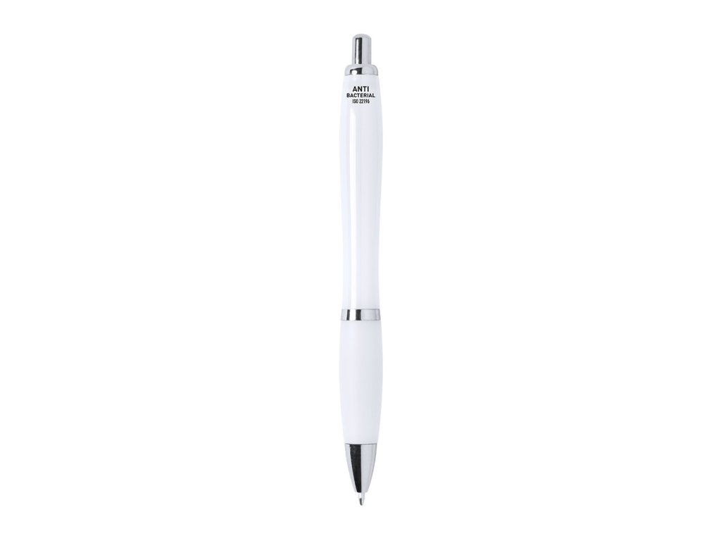 Antibakteriální kuličkové pero. Vyrobeno z materiálu ABS, který je speciálně zpracován tak, aby potlačoval a zabraňoval růstu bakterií na těle pera díky technologii nanostříbra, což je speciální úprava pomocí iontů stříbra. Tlačítkový mechanismus, s doplňky ve stříbrné barvě a tělem v bílé barvě. Vysekávaný klip a pohodlný úchop, s modrým inkoustem. Položka podle normy ISO 22196:2011, o měření antibakteriální aktivity v plastech a jiných neporézních površích.Buďte první, kdo napíše příspěvek k této položce.
