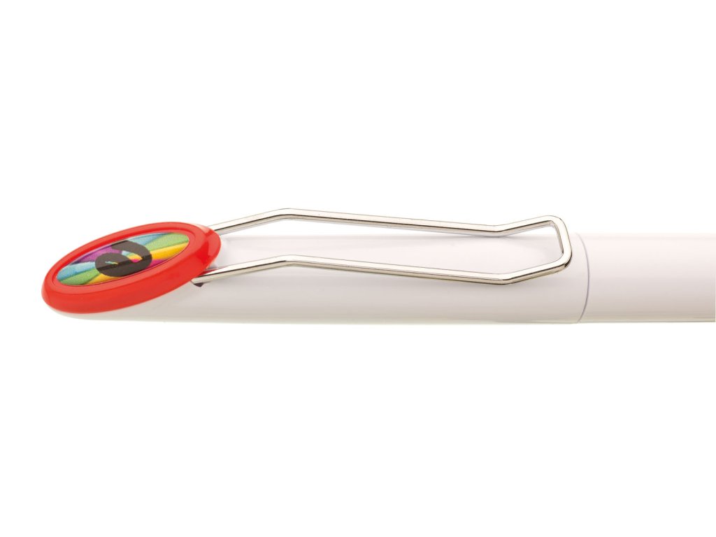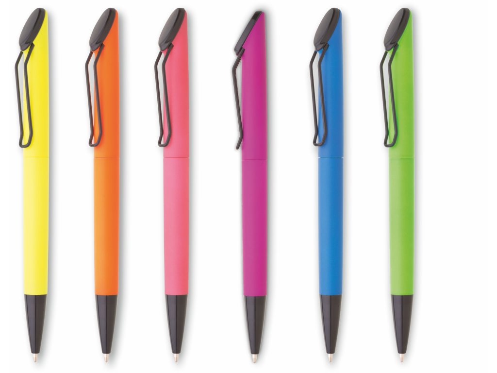 Plastová otočná propiska ARESTA v neonově fuchsiové barvě s černou špičkou a černým kovovým klipem. Na držák klipu je možné umístit epoxy samolepku. Náplň velkoobsahová, modře píšící.Doplňkové parametry