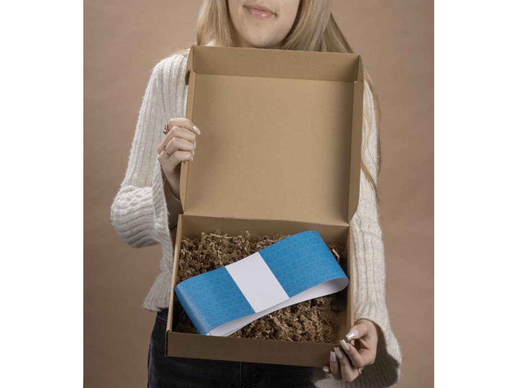 Dárkový balicí set AZUL „S“ je hotovým a stylovým řešením pro firemní dárky. Obsahuje pevnou krabičku z kraftové lepenky, béžovou papírovou výplň (s atestem pro styk s potravinami) a modrý obal se stříbrným autorským motivem vytvořeným speciálně pro BLUE COLLECTION. Obal zajišťuje elegantní zakončení a díky samolepicímu proužku se snadno používá. Sada je k dispozici ve třech velikostech (S, M, L) – snadno ji přizpůsobíte plánovanému obsahu.Doplňkové parametry