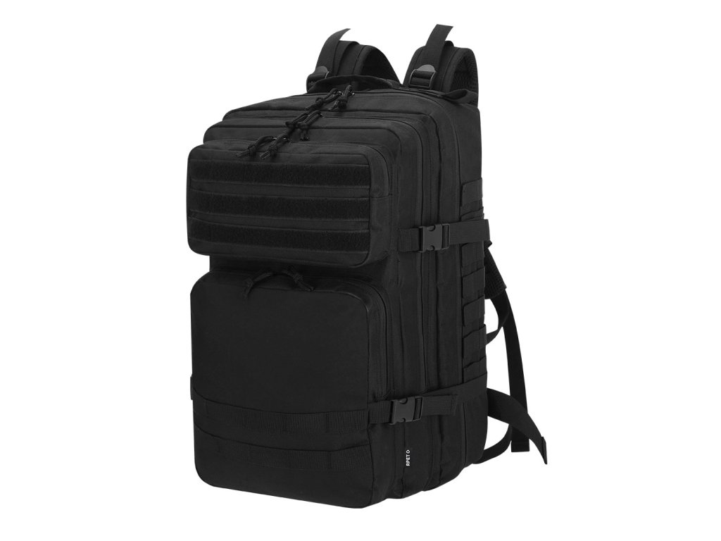 Taktický batoh vyrobený z odolného polyesteru RPET 600D. Přední část s několika kapsami, stejně jako elastické podpěry a suché zipy pro zavěšení potřebného příslušenství během dobrodružství. Hlavní prostor s dvojitým zipem a vnitřními kapsami s různými přihrádkami, s kapacitou pro 17palcový notebook. Obsahuje vyztužené rohy a rukojeť pro přenášení. S polstrovanými a nastavitelnými zádovými a ramenními popruhy a předními popruhy pro větší pohodlí. Štítek s označením RPET: Materiál RPET je vyroben z recyklovaného plastu, čímž podporuje opětovné využití plastového odpadu a napomáhá udržitelnosti planety.Diskuze