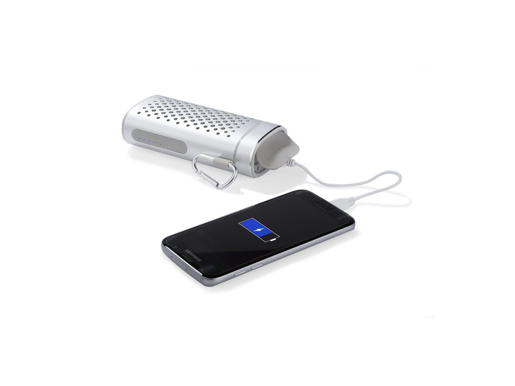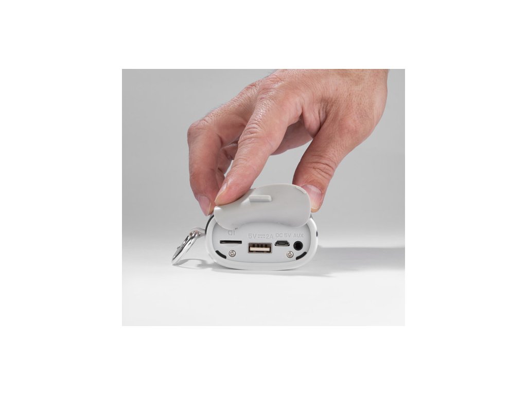 Elegantní bezdrátový reproduktor s power bankou s kapacitou 4000 mAh, bude skvělým dárkem pro příznivce serepetiček. Je vyroben z kovu, díky kterému je vysoce odolný, a s gravírovaným logem bude vypadat skvělé. Možnost použití reproduktoru jako hands-free sady. Přehrávání hudby je možné prostřednictvím bluetooth (verze 4.2), audio jack kabelu 3,5 mm (není součástí sady) nebo karty micro SD. Navíc, splňuje požadavky třídy vodotěsnosti IPX4, tzn, že je schopný odolat pocákání a pokropení vodou ze všech možných úhlů s průtokem do 10 litrů za minutu. Skvělé se hodí pro každodenní použití a během kempování, např. kdy poprchává. Výrobek splňuje požadavky směrnic Evropské unie, je opatřen značkou CE a je na něj poskytnuta záruka v délce 1 roku. Sada obsahuje nabíjecí kabel s koncovkou micro USB a karabinou. Technické údaje: - vstup: 5V / 1A, - vystup: 5V/2A, - lithium-polymerové akumulátorové články, výstupní výkon: 5W x 1, 3D stereo efekt a nastavení výšek basu, Napětí: 5V Poměr S/N: ≥ 80 dB, max výdrž: 10-15 hodinDoplňkové parametry