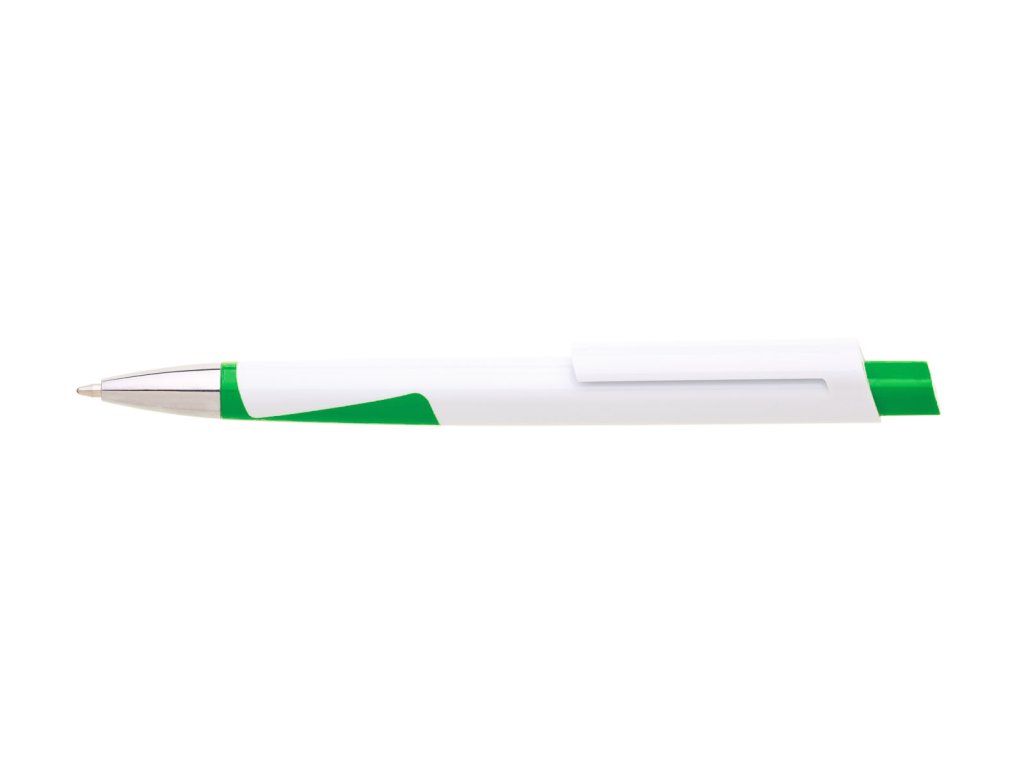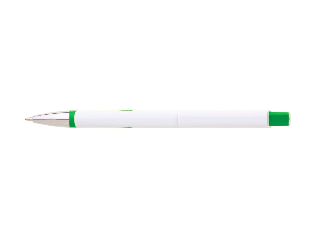 Plastová bílá propiska CARRE se čtvercovým profilem a zelenými doplňky. Ideální na uv potisk. Náplň velkoobsahová, modře píšící.Doplňkové parametry