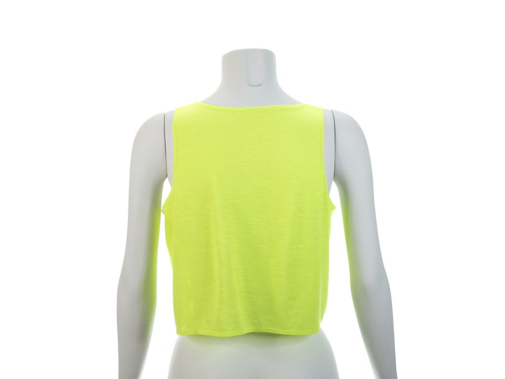 Dívčí tričko z měkkého polyesteru 130 g/m2. Se zavazovacím vzorem a uzlovým zapínáním vpředu. K dispozici v bílé barvě a v široké škále zářivých fluorescenčních barev. Velikosti S, M, L.