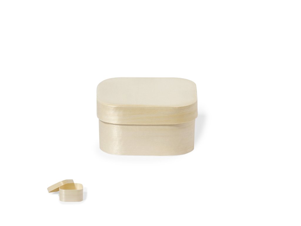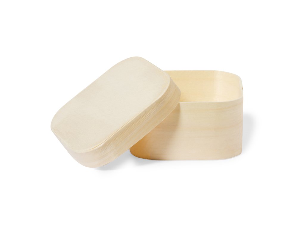 Prezentační krabička čtvercového formátu z přírodního dřeva s odpovídajícím víkem.