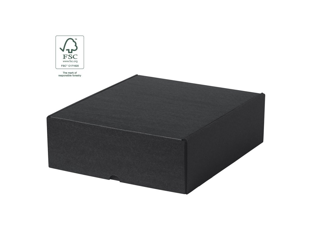 Prezentační krabička velikosti XL. Vyrobeno z černé vlnité lepenky. V souladu s trendem trhu zaměřeným na komplexní udržitelnost dárků nabízí řešení, která pomáhají zlepšovat a chránit naši planetu.Buďte první, kdo napíše příspěvek k této položce.