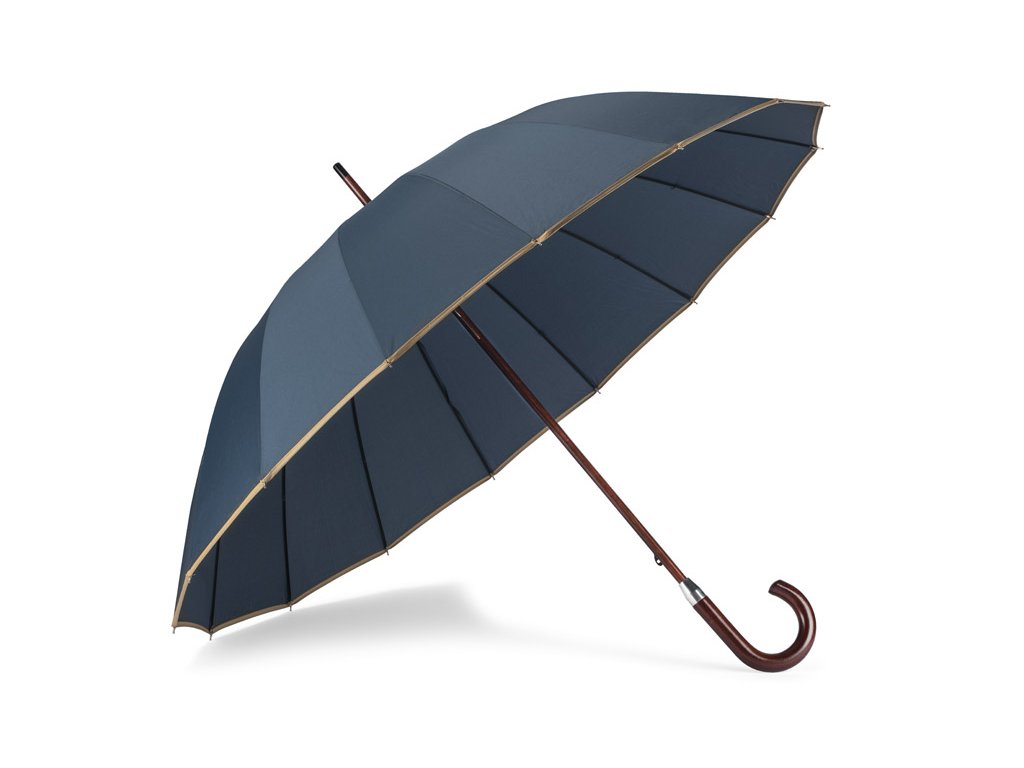 Velmi elegantní ruční deštník s 16 panely, ukončený zakřivenou dřevěnou rukojetí. Jeho průměr při rozložení je roven 112 cm, celková délka po složení je 90 cm. Šířka jednoho panelu je 22 cm. Logo může být potištěno sítotiskem.Doplňkové parametry