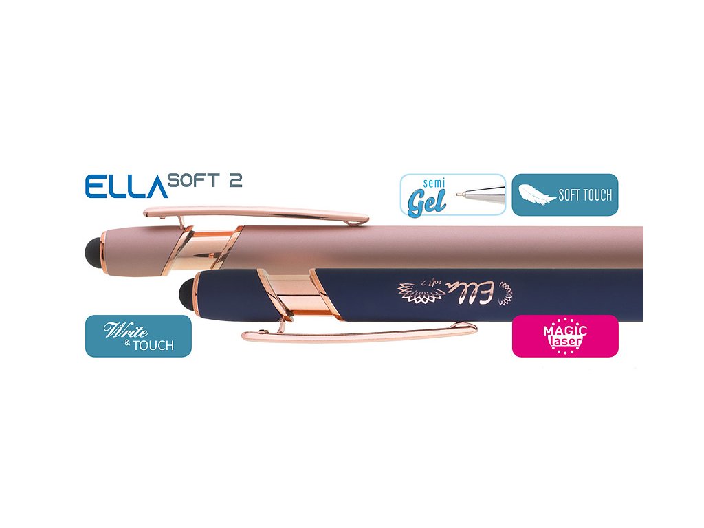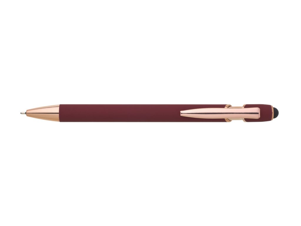 Kovová propiska se soft povrchem, touch koncovkou a doplňky v růžovo-zlaté barvě. Laserované logo je lesklé, růžovo-zlaté. Náplň semigelová, modře píšící.Doplňkové parametry