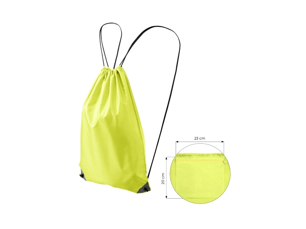 zavírání na stahování 2 polyesterové šňůrky v barvě 01 reflexní prvky v dolních rozích vnitřní kapsa na zip 20 x 23 cm rozměry batohu 45 x 34 cmDoplňkové parametry