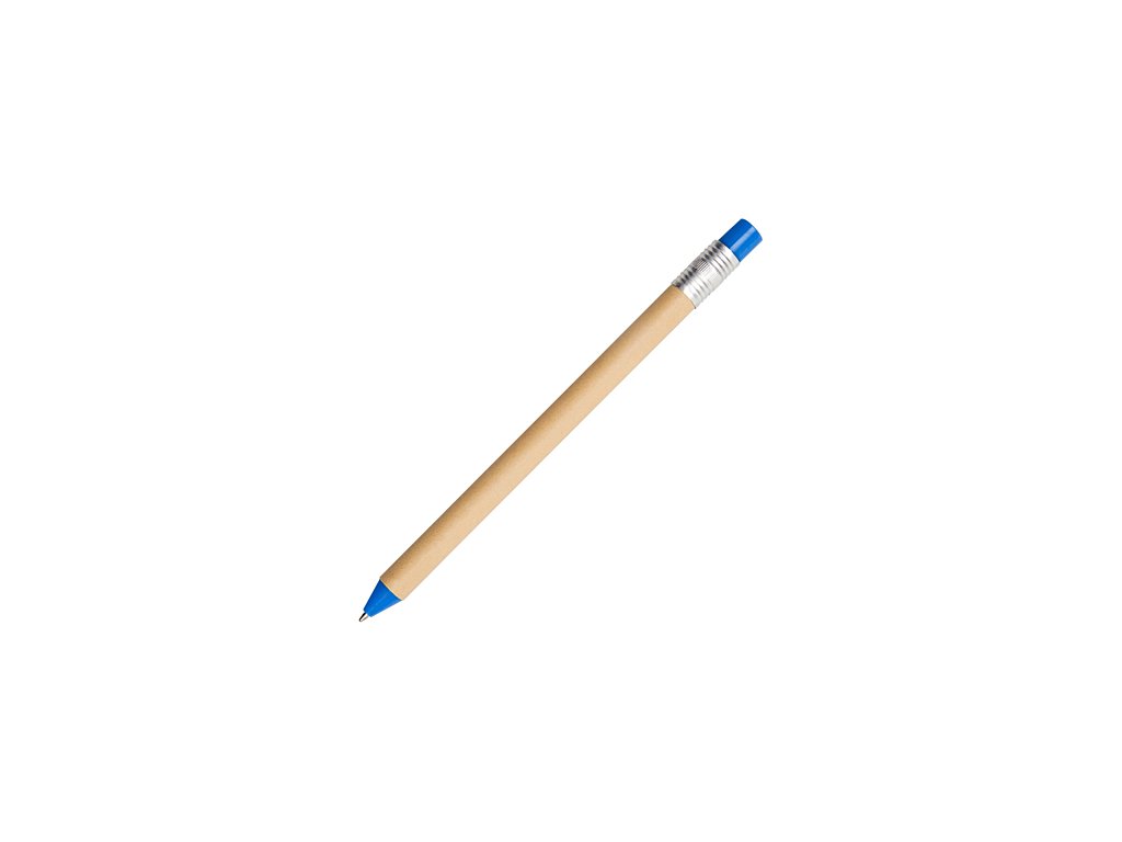 Kuličkové pero ve tvaru ořezané tužky z recyklovaného kartonu s prvky z recyklovatelného plastu, modrá náplň.Doplňkové parametry