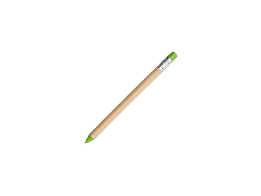 Kuličkové pero ve tvaru ořezané tužky z recyklovaného kartonu s prvky z recyklovatelného plastu, modrá náplň.Doplňkové parametry