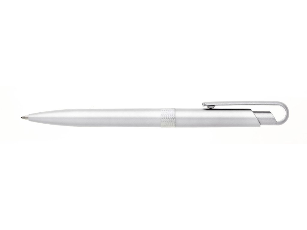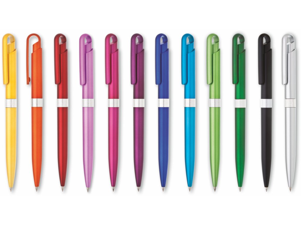Plastové, kuličkové pero FIROL má stříbrné, metalické tělo se stříbrným rýhovaným proužkem uprostřed. Náplň velkoobsahová, modře píšící. Kolekce DESIGN.Doplňkové parametry