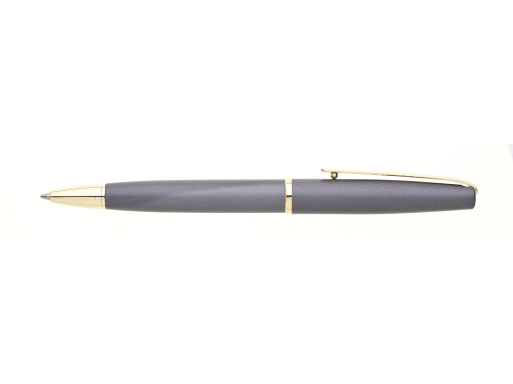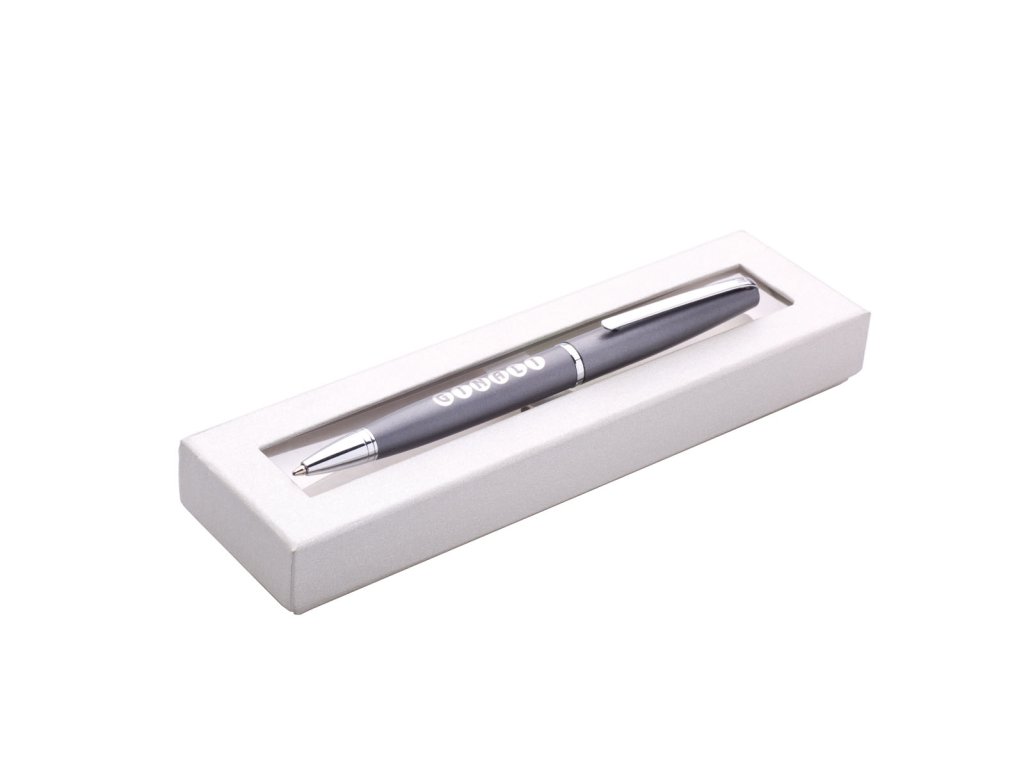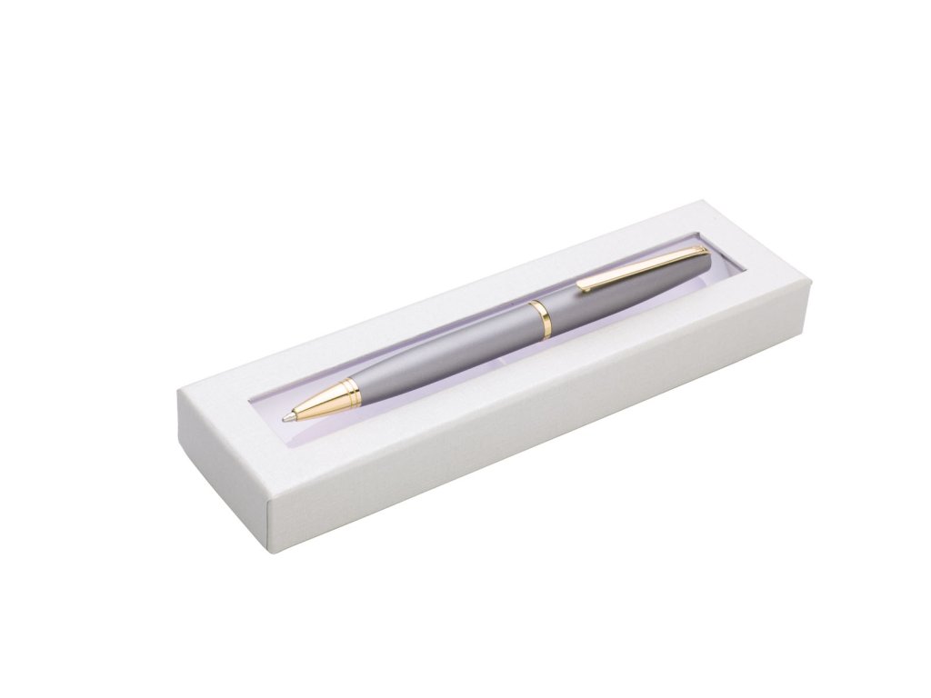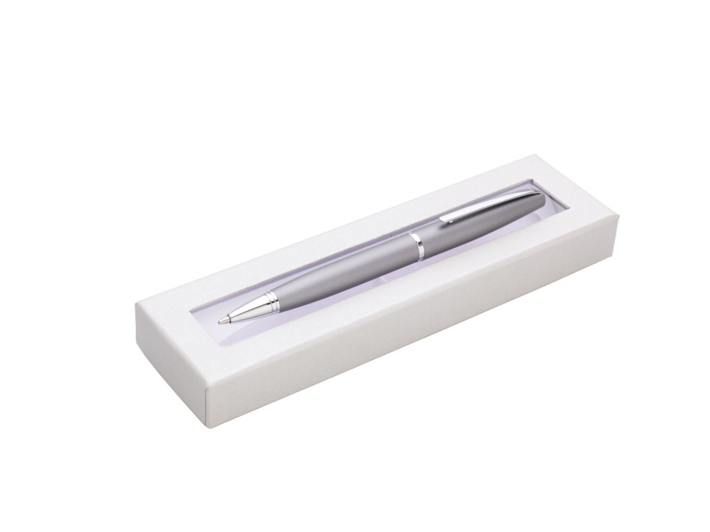 kovová propiska v dárkové krabičce s průhledným okénkem.