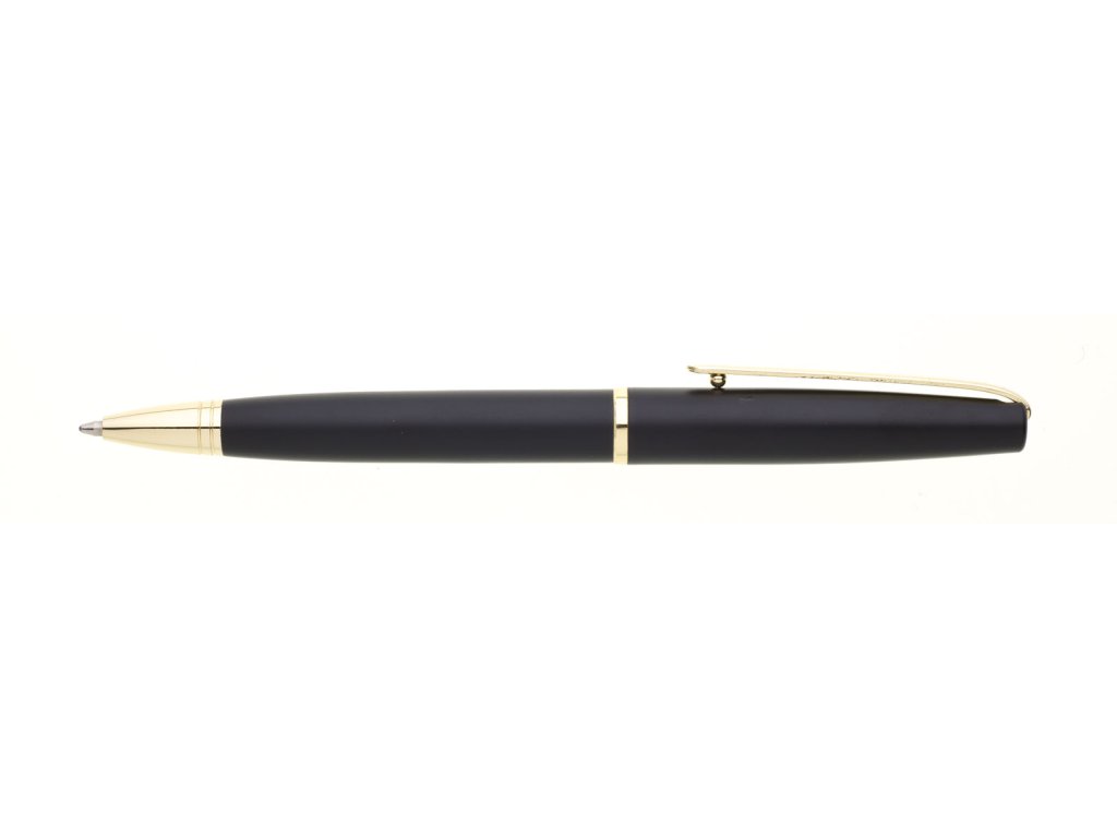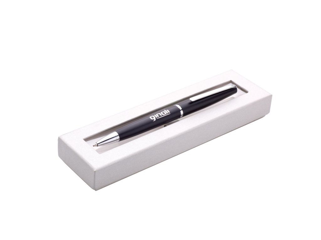 kovová propiska v dárkové krabičce s průhledným okénkem.