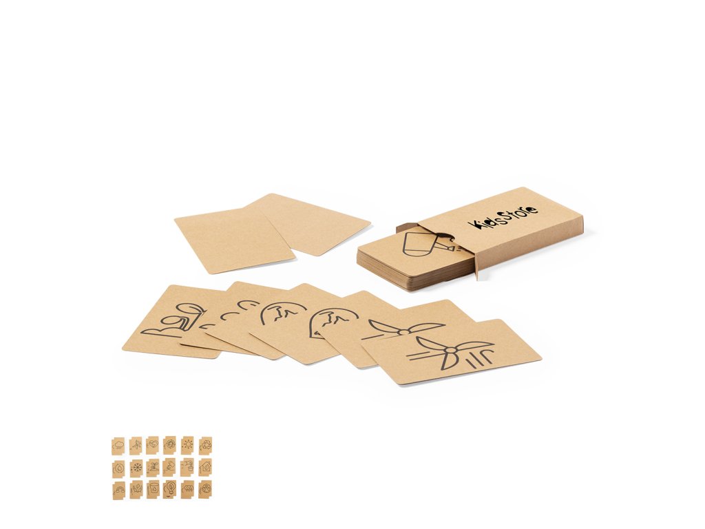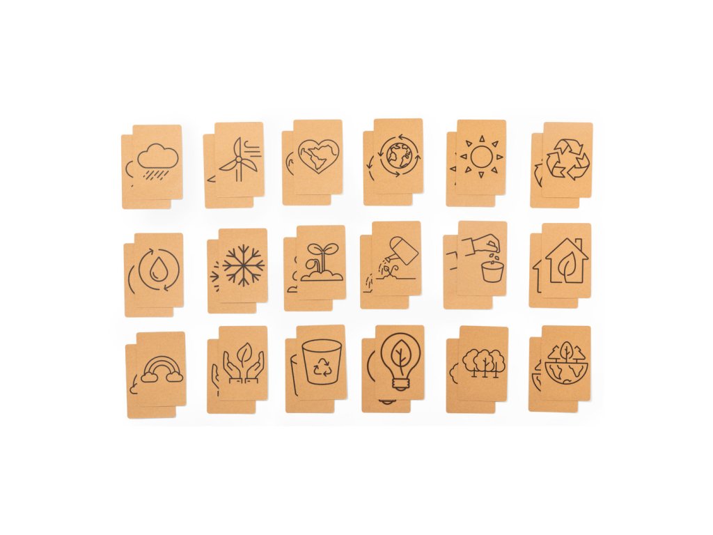 Hra na zvyšování ekologického povědomí vyrobená z recyklovaného kartonu. Sada 36 karet v samostatné krabičce z recyklovaného kartonu.