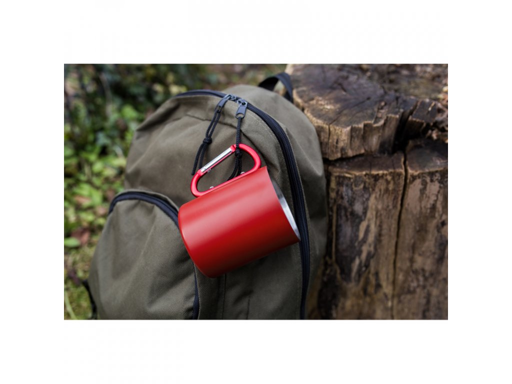 Hrnek 280 ml s karabinkou, vyrobený z recyklované nerezové oceli, dvojitá stěna
