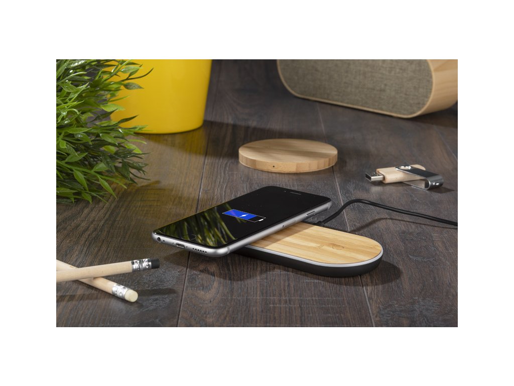 Nabíječka PARO je ideálním dárkem pro… páry! Je vybavená dvěma indukčními nabíjecími plochy. Zdobená přírodním bambusem a díky tomu může být výzdobou interiéru. Napájena moderním konektorem USB typu C, který postupně nahrazuje starší konektor mikro USB. Je to pomůcka, která mysli na budoucnost a bude se líbit mnoha milovníkům nových technologií a přírodních materiálů. Technické údaje: vstupní konektor typu C: 5V/2,4A, výstup indukční nabíječky 5V/0,7A, účinnost konverse 70 %, vzdálenost pro bezdrátové nabíjení <5mm. Nabíjecí výkon 5 WDoplňkové parametry