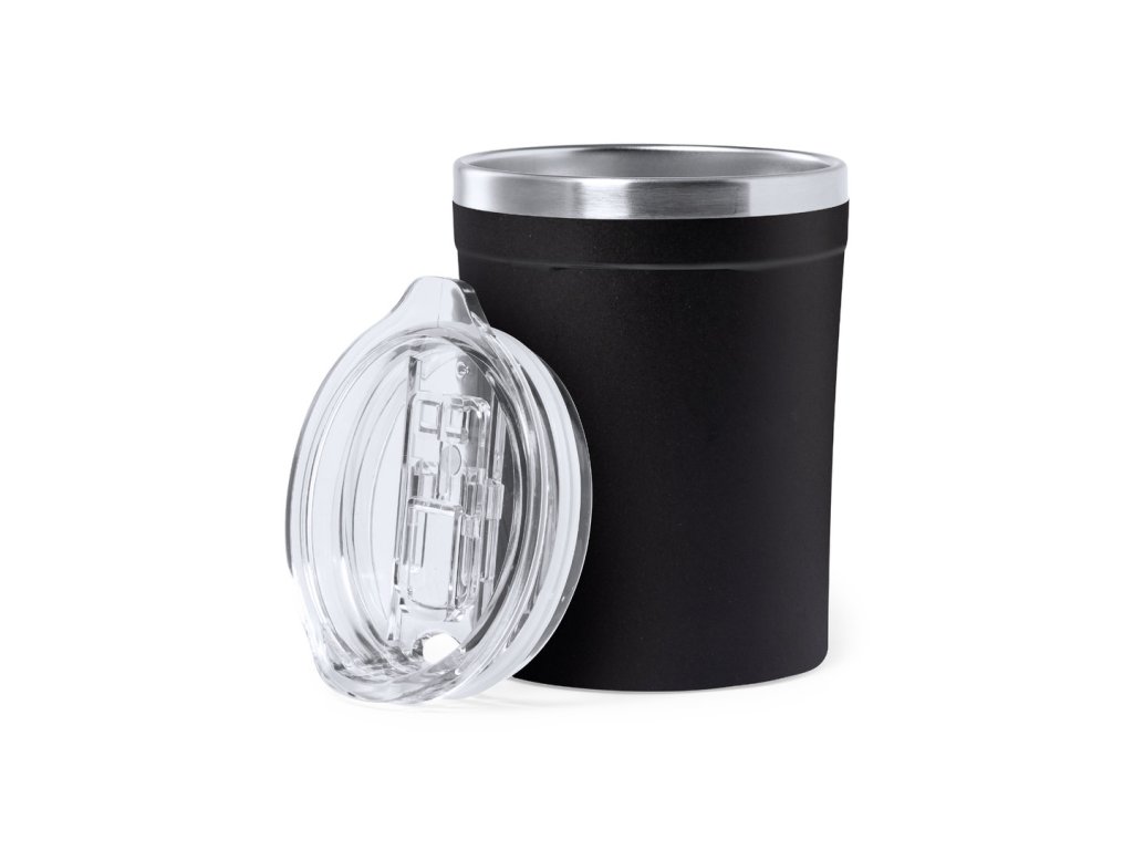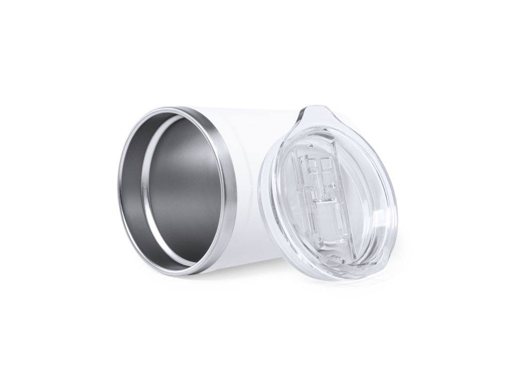 Stolní izolovaný hrnek z nerezové oceli o objemu 350 ml. Vnější strana z PP, s dávkovačem a snadno otevíratelným víčkem. Neobsahuje BPA. Dodáváno v samostatné kraftové designové krabici.