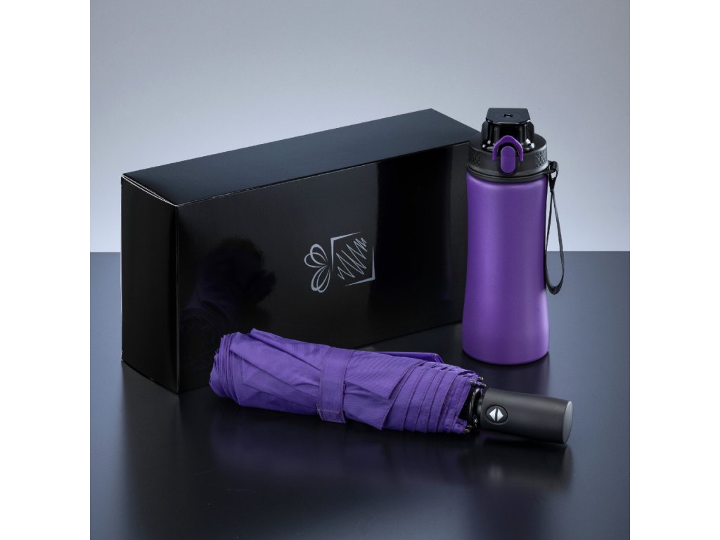 Praktická sada, která dobře poslouží při každodenním používání, obsahující ocelovou láhve na vodu a automatický deštník z kolekce Primo. Láhev na vodu je vyrobena z odolné potravinářské nerezové oceli 18/8 na vnějším i vnitřním plášti, což zajišťuje nejvyšší standardy kvality a trvanlivosti. Produkt poskytuje pohodlné a bezpečné uchopení díky svému ergonomickému tvaru. Inovativní design zahrnuje pohodlný otevírací mechanismus na jedno kliknutí pro rychlý a snadný přístup k vašemu nápoji. Když láhev nepoužíváte, můžete uzávěr uzamknout, aby se obsah nerozlil. Skládací deštník je vysoce kvalitní produkt z kolekce Primo s DAS (Double Automatic System - automatické zavírání a otevírání) a systémem ochrany proti větru. Vlastnosti: pevný kovový rám, žebra potažená skelným vláknem a rukojeť potažená PU, s dodatkem kovového plátu – ideální pro gravírování. Deštník se perfektně hodí do příruční tašky nebo batohu. Produkt má certifikaci REACH. Sada je zabalena v elegantní černé krabičce.Doplňkové parametry