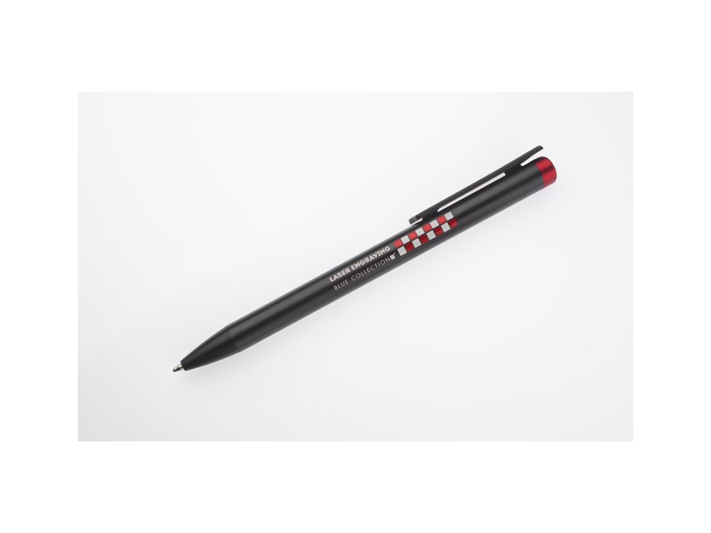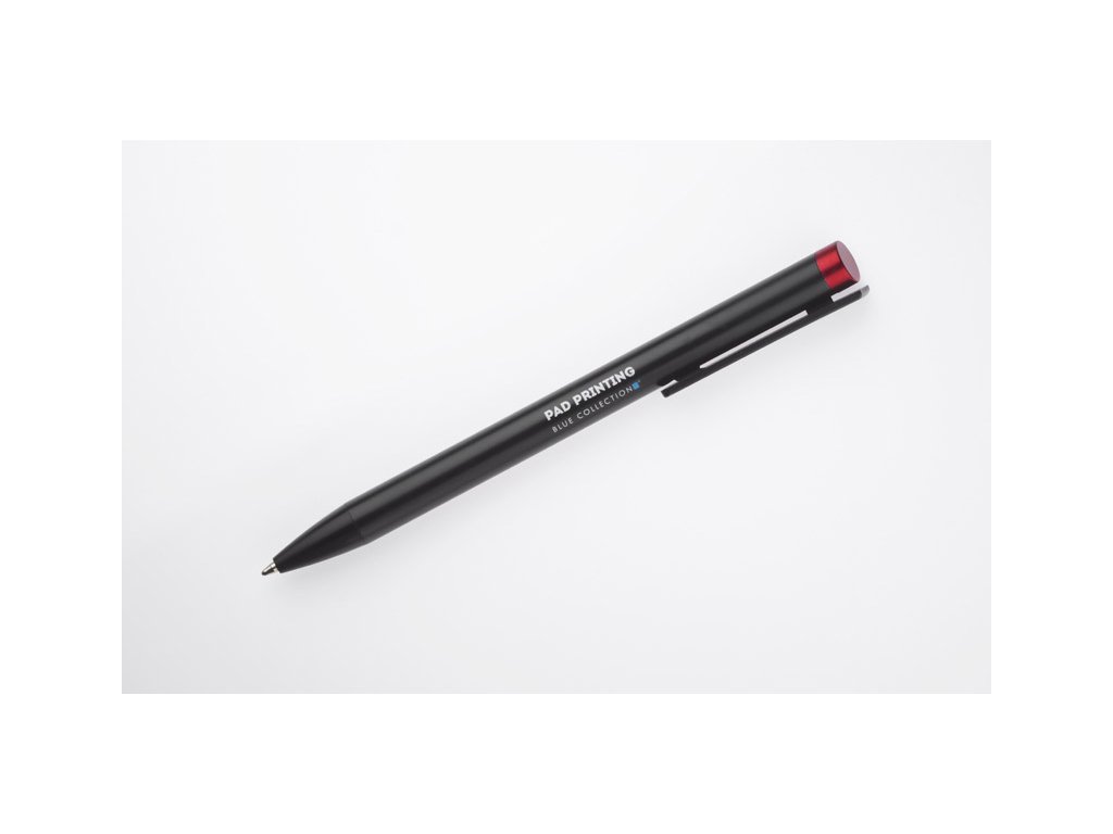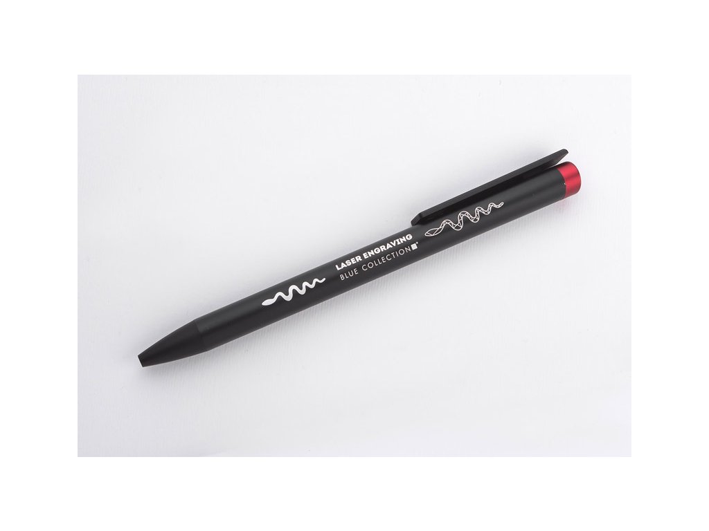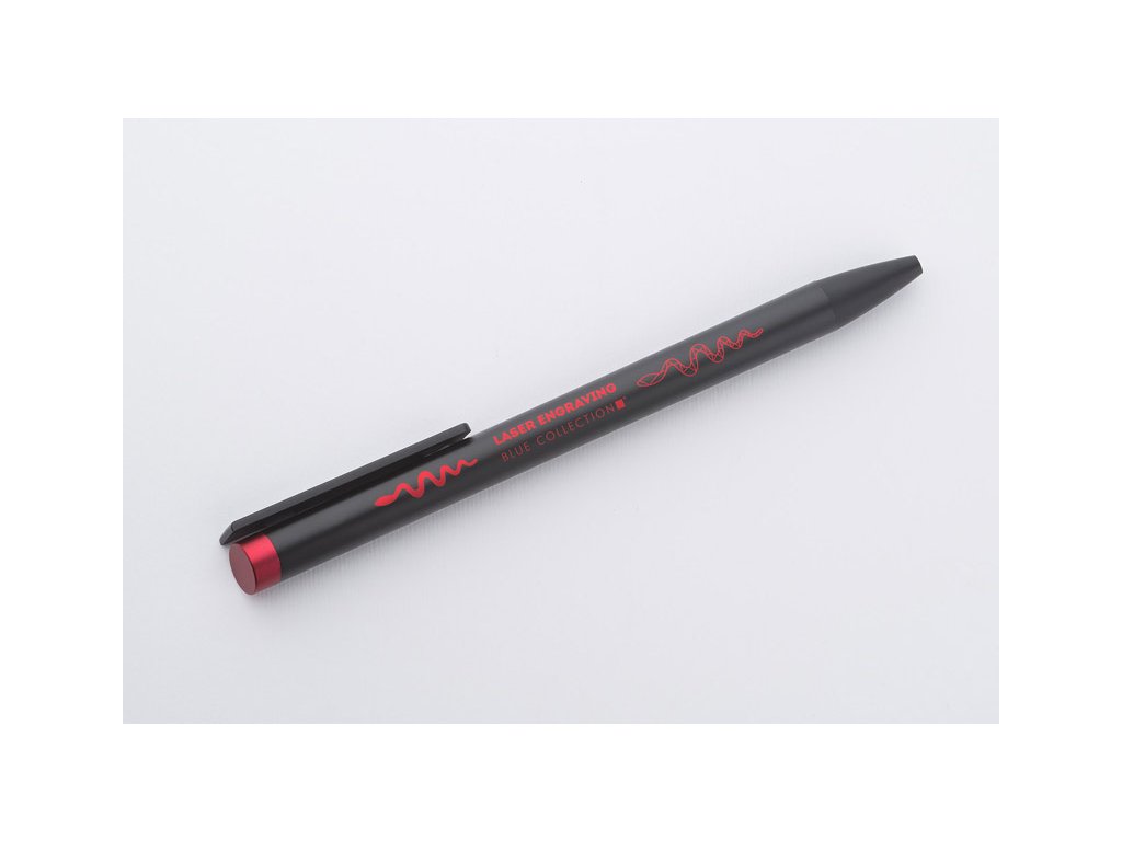 ALI je výjimečné pero, které umožňuje branding v barvě blížící se odstínu části zakončení pera nebo neobyčejného dvoubarevného gravíru - v barvě blížící se odstínu části zakončení pera nebo bílé (odstín aluminium). Černé kovové těleso a černé konečné provedení jsou perfektním pozadím pro barevné gravírování. Automatická propiska. Modrá náplň typu X20 s šířkou hrotu 1.0 mm.Doplňkové parametry