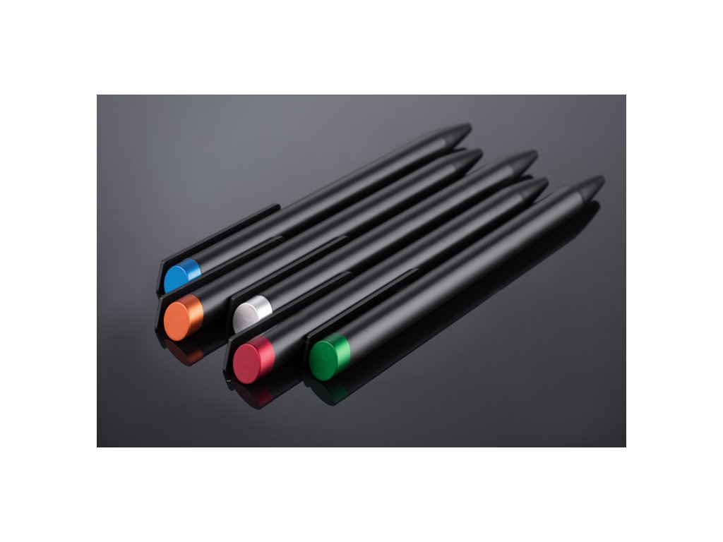 ALI je výjimečné pero, které umožňuje branding v barvě blížící se odstínu části zakončení pera nebo neobyčejného dvoubarevného gravíru - v barvě blížící se odstínu části zakončení pera nebo bílé (odstín aluminium). Černé kovové těleso a černé konečné provedení jsou perfektním pozadím pro barevné gravírování. Automatická propiska. Modrá náplň typu X20 s šířkou hrotu 1.0 mm.Doplňkové parametry