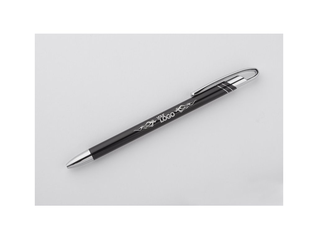 Tenký a hladký kovový pero s metalickým povrchem. Sponka a špičky ve stříbrné chromové úpravě. AVALO se od ostatních podobných per odlišuje originálním designem sponky. Válec je ozdoben dvěma skloněnými stříbrnými pruhy. Modrá náplň o tloušťce 0,7 mm.Doplňkové parametry