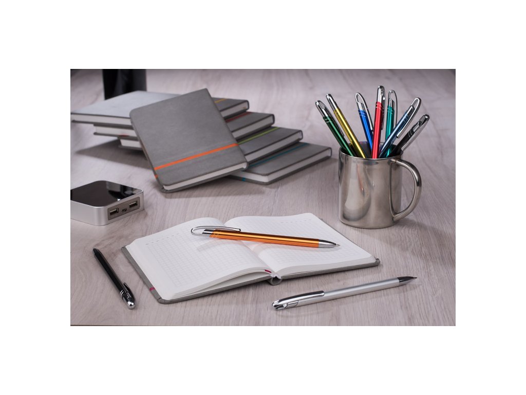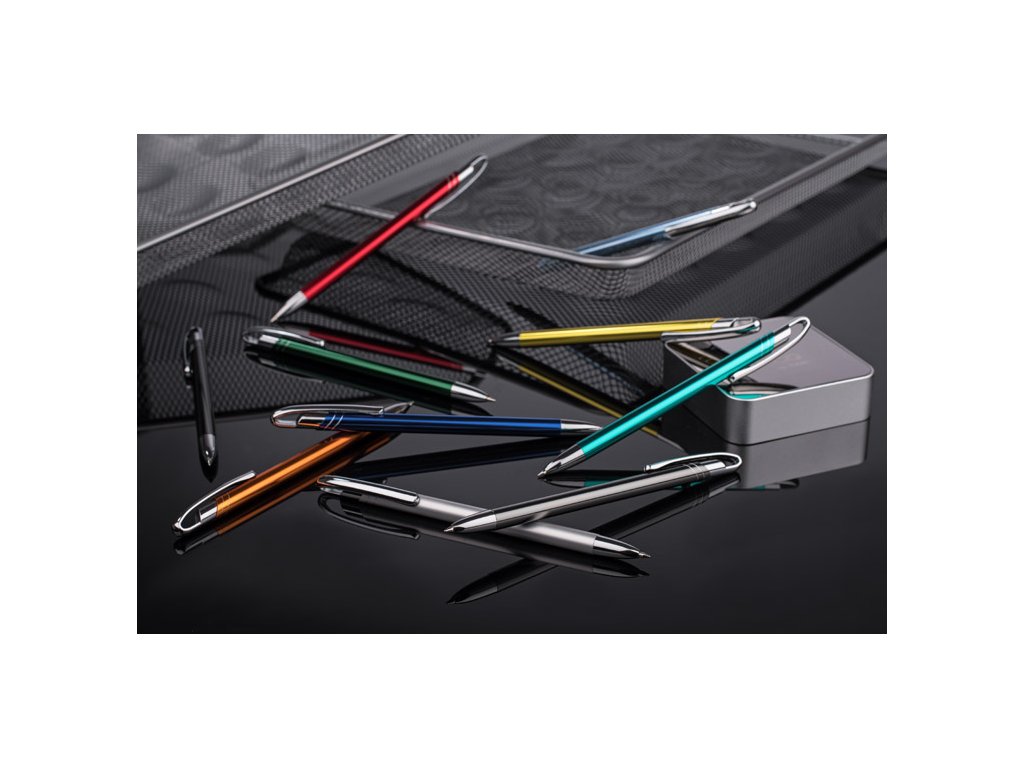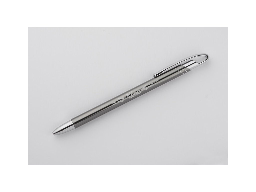 Tenký a hladký kovový pero s metalickým povrchem. Sponka a špičky ve stříbrné chromové úpravě. AVALO se liší od ostatních podobných per od originálního designu sponky. Válec je ozdoben dvěma skloněnými stříbrnými pruhy. Modrá náplň o tloušťce 0,7 mm.Doplňkové parametry