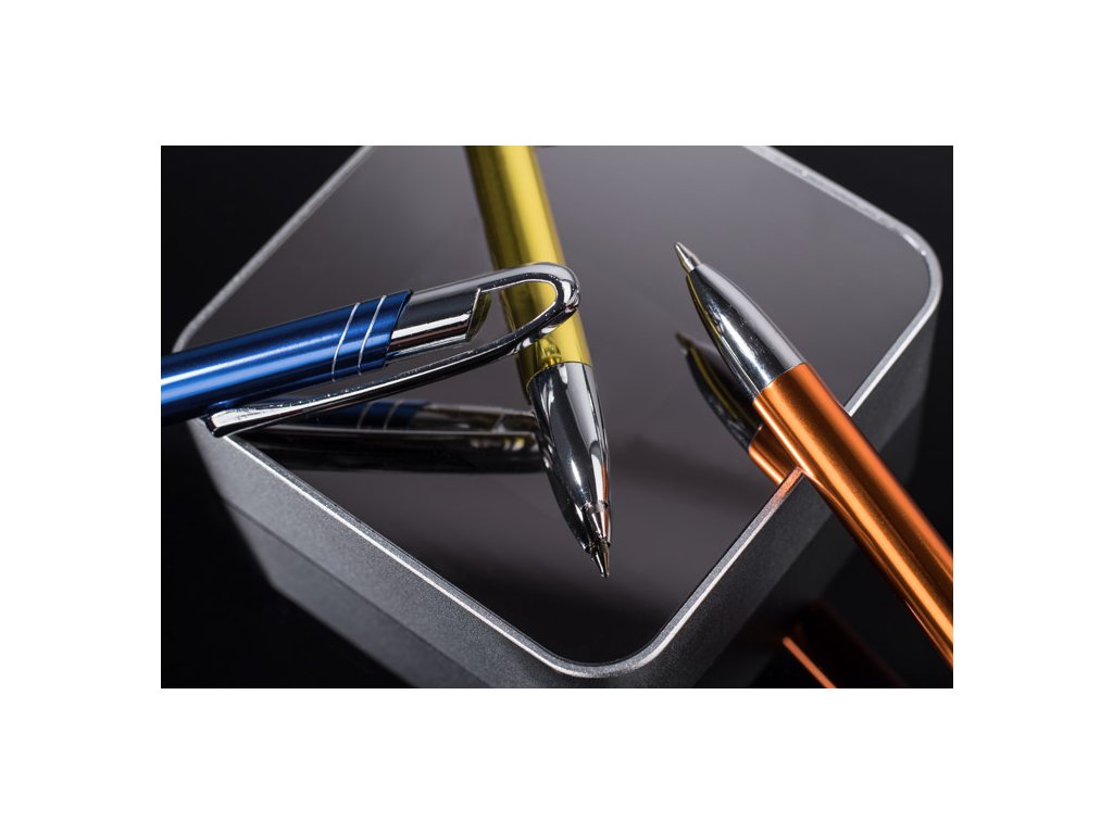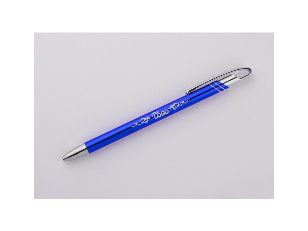 Tenký a hladký kovový pero s metalickým povrchem. Sponka a špičky ve stříbrné chromové úpravě. AVALO se od ostatních podobných per odlišuje originálním designem sponky. Válec je ozdoben dvěma skloněnými stříbrnými pruhy. Modrá náplň o tloušťce 0,7 mm.Doplňkové parametry