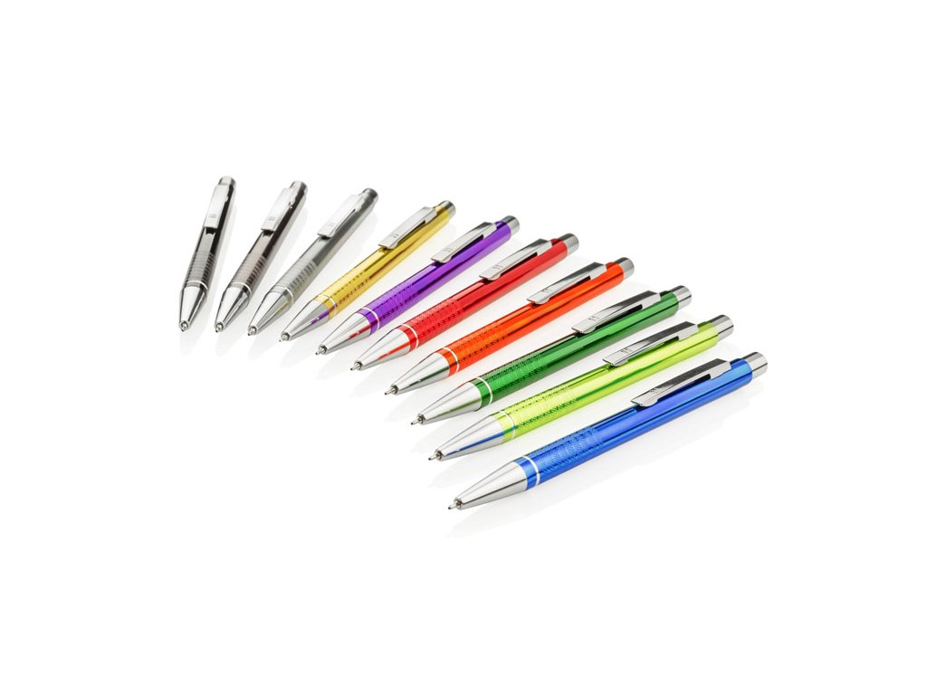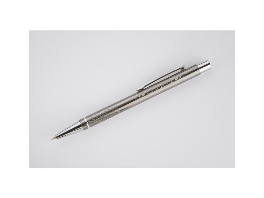 BONITO pen je klasická elegantní kovová pera ve stříbrných odstínech s chromovanými povrchy. Vyrobeno z hliníku. Tělo je ozdobeno stříbrným prstenem na spodní straně a pásky s jemně chromovanou strukturou. Pero s kuličkovým perem obsahuje nový typ náplně s polo-gelovou inkoustem o tloušťce 0,7 mm. Vložte do modré barvy.Doplňkové parametry