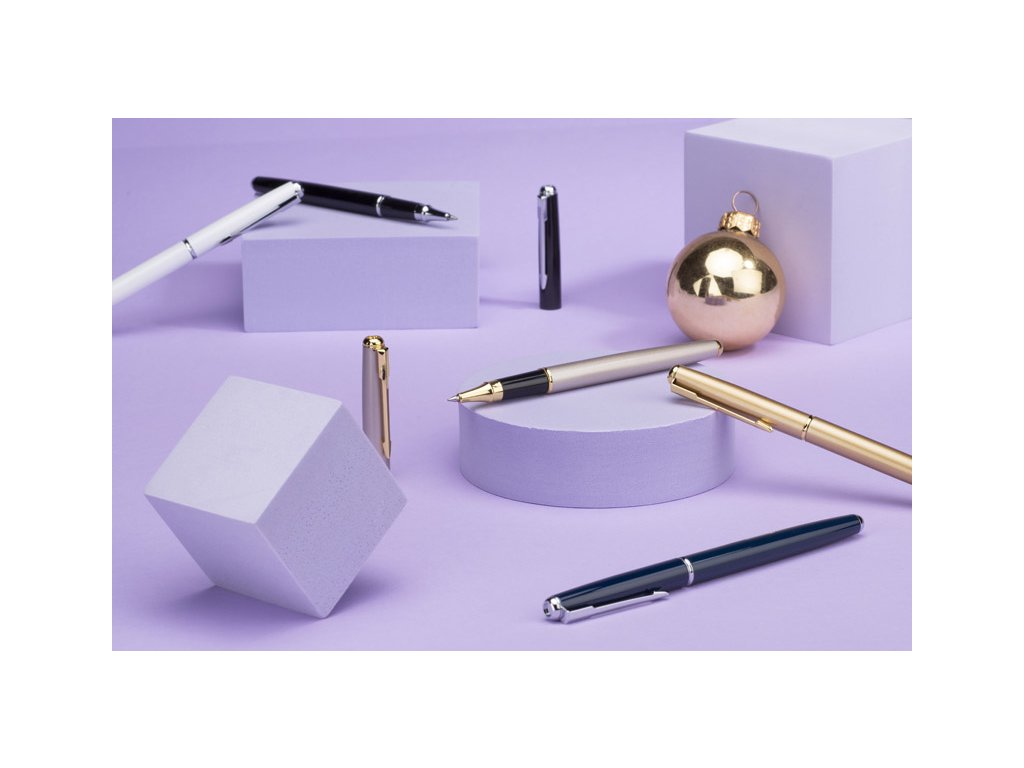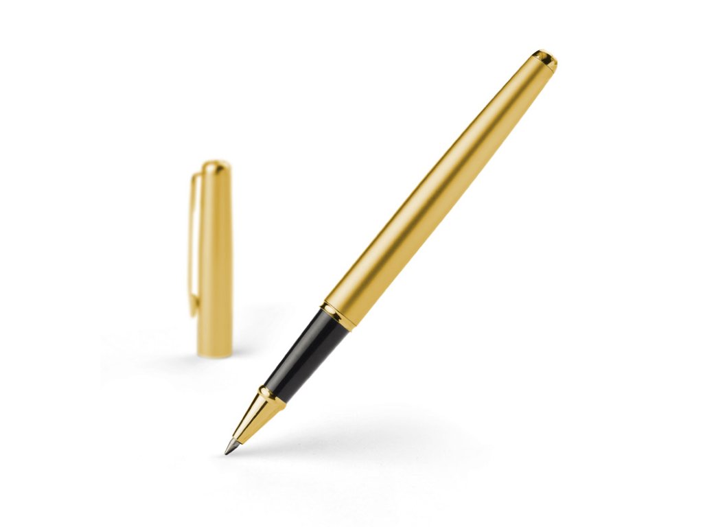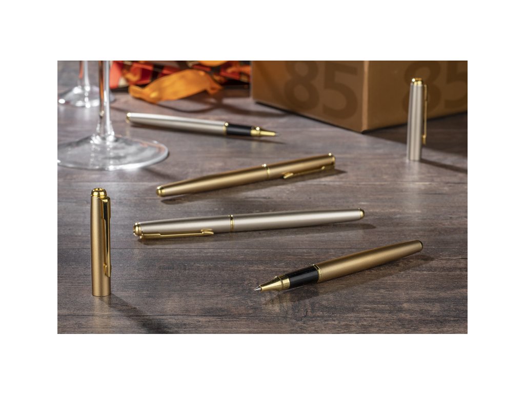 Kuličkové pero vyrobené z kovu se zlatým finišem. Klasický vzor zajišťuje nadčasovou eleganci.Doplňkové parametry