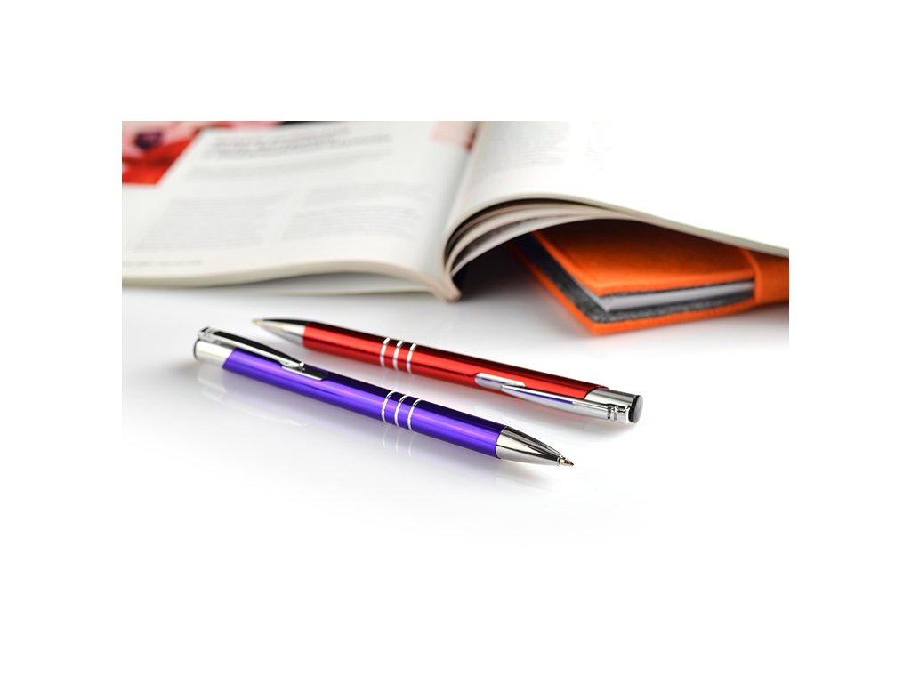 Populární kovová pero s metalizovaným povrchem. Je to automatické pero s 3 kroužky. Každé je baleno do polybagu. Logo může být vyryto na těle pera.Doplňkové parametry