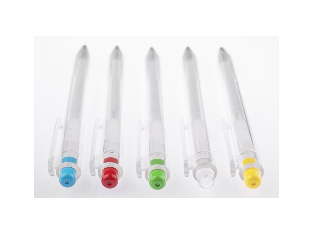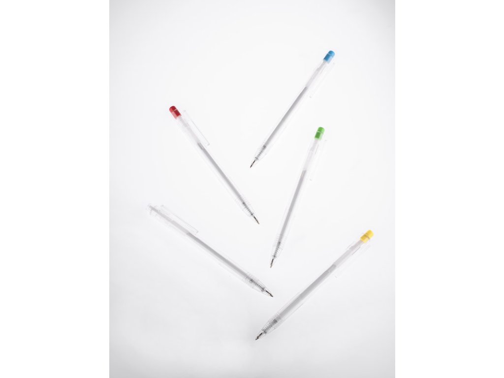 Pero KLIIR je vyrobeno výhradně z recyklovaného PET (rPET). Ukazuje nám, jak můžeme vědomě nakládat s plastovým odpadem a vytvářet z něj nové užitečné předměty. Průhledné, bezbarvé tělo pera je pěkně kombinováno s tlačítkem v živých barvách. Automatické kuličkové pero, modrá náplň typ G2.Doplňkové parametry