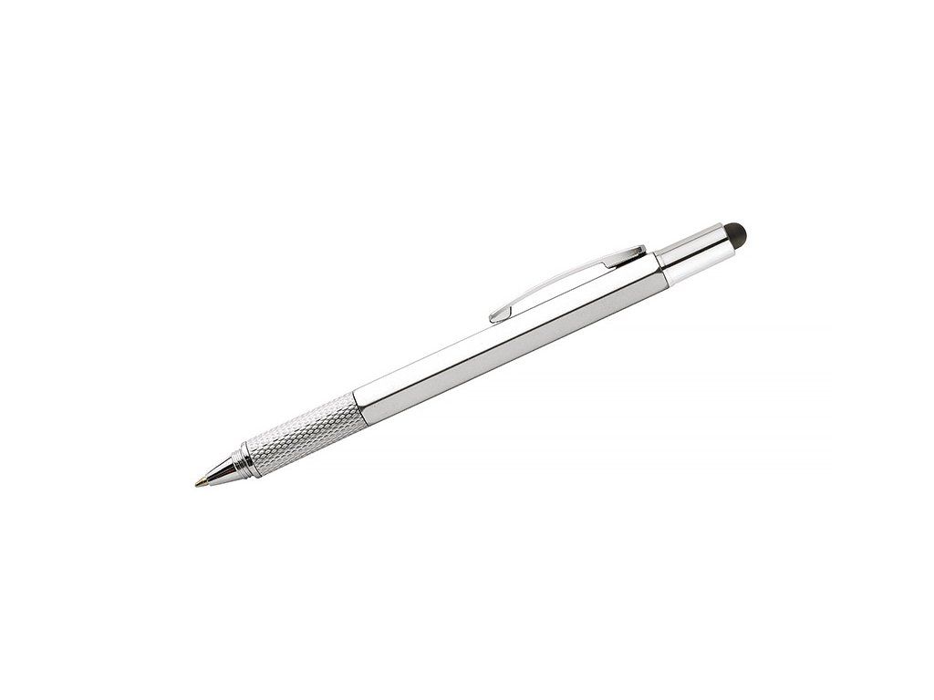 Wielofunkcyjny długopis do każdego entuzjasty DIY. Na ciele produktu znajdują się dwie skale (metry i cale) oraz poziomica. Pod kapturem z piórkiem dotykowym znajduje się kolejna przydatna część - kompaktowy śrubokręt na magnesach. Oznaczenia mogą być wykonane na ciele produktu.Doplňkové parametry