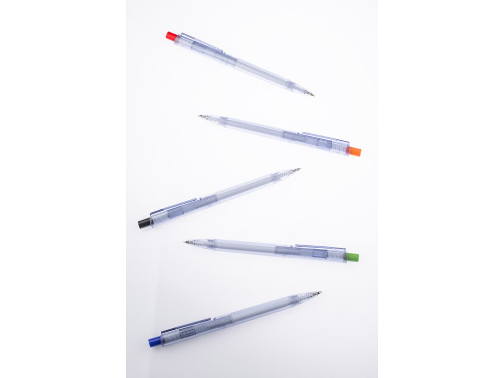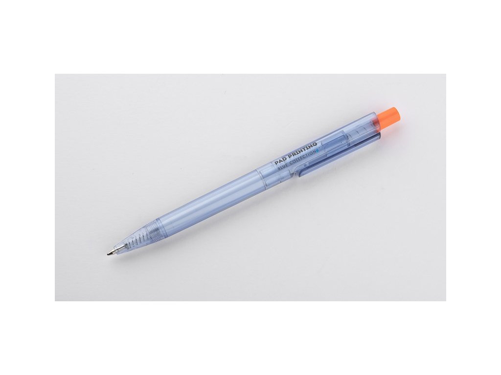 Pero RECYKLO vyrobené výhradně z rPET (recyklovaný PET) je odpovědí na hledání způsobů nakládání s plastovým odpadem. Průhledné modré tělo připomíná láhev s vodou, ze které bylo vyrobeno. Automatické kuličkové pero, modrá náplň typ G2.Doplňkové parametry