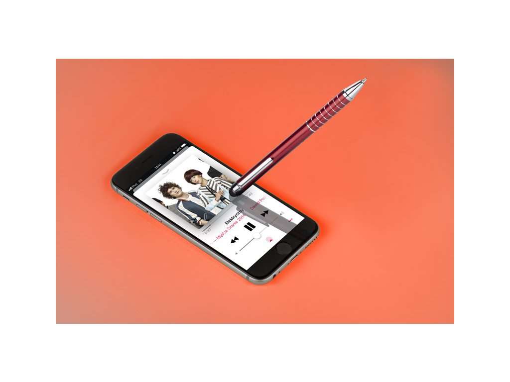 Dotykové pero a kuličkové pero v jednom. Umožňuje to snadnou práci na tabletech a chytrých telefonech. Náplň - modrá. Logo by mohlo být vyryto na peru.Doplňkové parametry