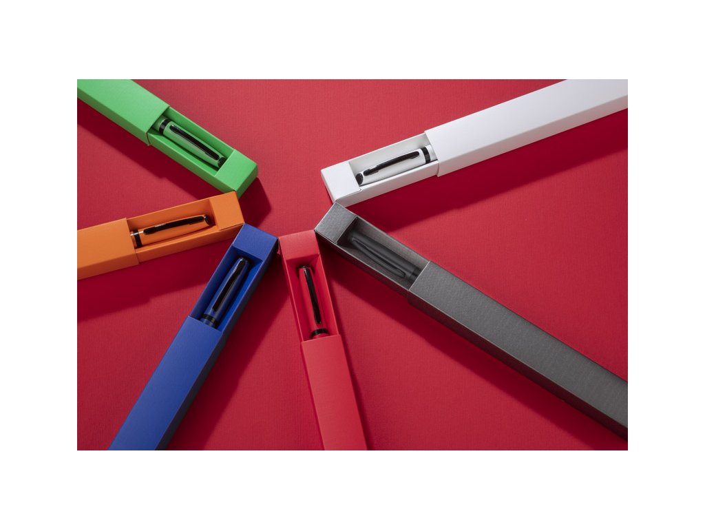 RIO je elegantní propiskou zabalenou do papírové krabičky barevně přizpůsobené krytu propisky. Matná barva hezký kontrastuje s černým zdobením. Propiska se spouštěcím mechanismem typu „twist“, s náplň typu G2 v modré barvě.Doplňkové parametry