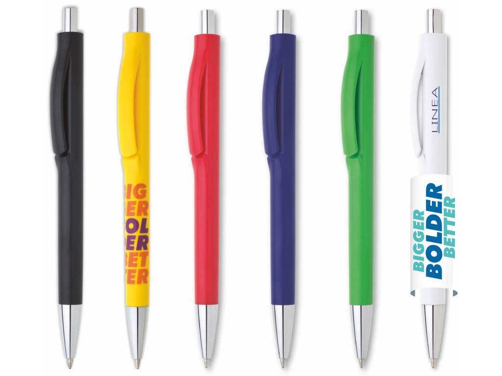Propiska LINEA žlutá má zajímavě řešený klip a stříbrné doplňky, modře píšící náplň. Kolekce DESIGN.Doplňkové parametry