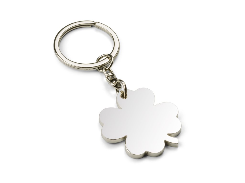 Čtyřlístková klíčenka přinese štěstí každému majiteli. Vyrobeno z chromovaného kovu. Logo může být vyryto na jetel.Doplňkové parametry