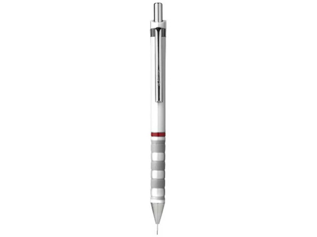 Plastová mechanická tužka ROTRING Tikky bílé barvy má šedou, ergonomicky tvarovanou úchopovou část a leštěné chromované doplňky s firemním červeným kroužkem nad úchopem. Tikky je skvělý nástroj pro precizní psaní a kreslení.Doplňkové parametry