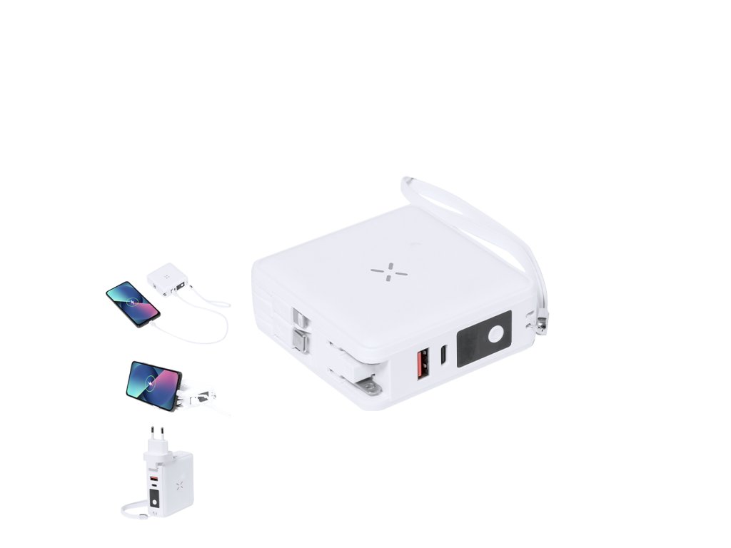 Bezdrátový, multifunkční cestovní adaptér s více výstupy a integrovanou powerbankou s nabíjecí kapacitou 10 000 mAh. Elegantní bílý design s velkou značkovou plochou. Funkce bezdrátového nabíjení s technologií magsafe, s duálním vstupem/výstupem typu C a výstupy USB. Dva integrované výstupní kabely s konektory typu C a 2 v 1 (Micro USB a Lightning). Současné použití pro všechny funkce, s adaptéry do zásuvky pro USA, Evropu, Asii, Velkou Británii a Austrálii. Dodáváno v atraktivní kraftové designové krabici. Návod k použití je k dispozici v angličtině a španělštině. kapacity uvedené u všech našich externích pomocných baterií jsou skutečné, všechny obsahují nerecyklované baterie třídy A s životností nejméně 500 nabíjecích cyklů a splňují předpisy CE. Kromě toho jsou vyráběny podle norem RoHS a v souladu s následujícími bezpečnostními požadavky: Systém ochrany powerbanky proti přebití. Kompletní systém ochrany proti vybití, který zvyšuje životnost powerbanky. Systém blokování, který zabraňuje zkratům. Systém stálého přenosu nabití v souladu s kapacitou cílového zařízení.Buďte první, kdo napíše příspěvek k této položce.