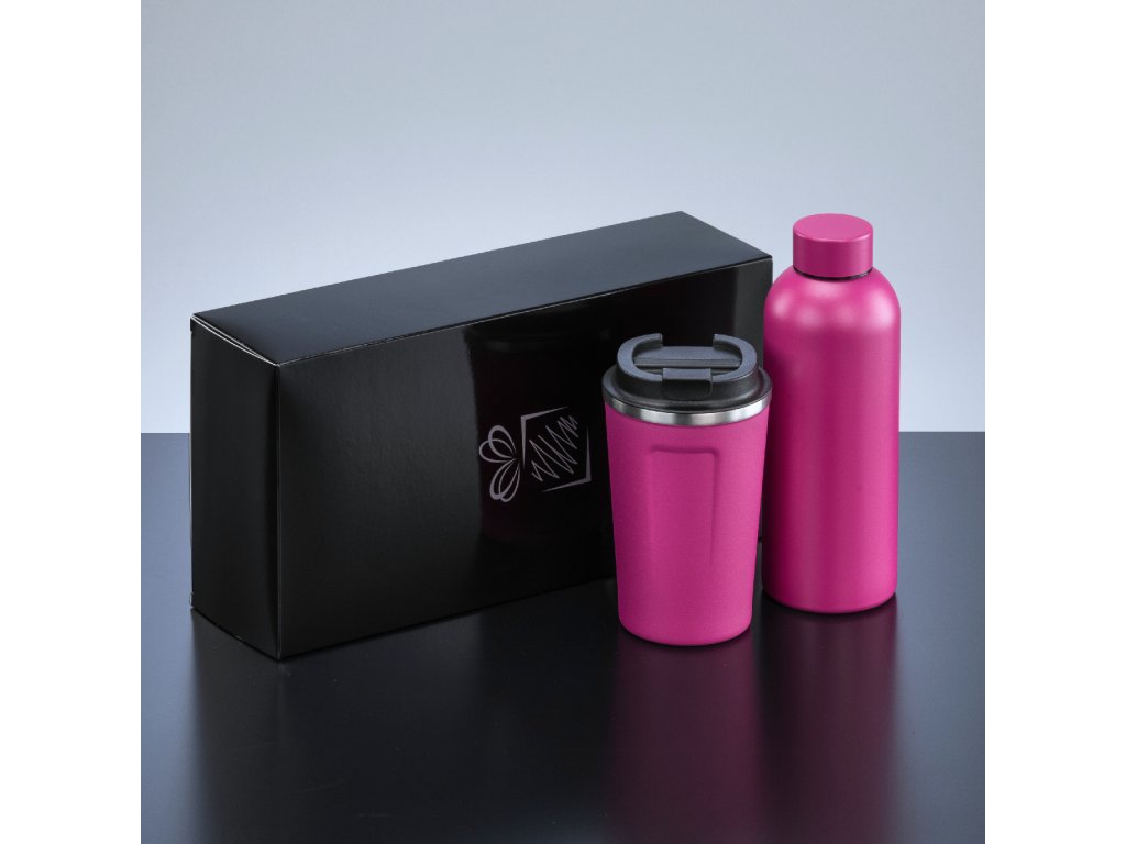 Praktická sada pro outdoorové aktivity, obsahuje hrnek na kávu Nordic (objem 350 ml) a termo láhev na vodu Nordic (objem 500 ml). Termohrnek Nordic poskytuje vynikající termoizolační schopnosti (až 12 hodin chladu, až 6 hodin tepla). Oba produkty jsou vyrobeny z nejkvalitnější nerezové oceli 18/8, odolné vůči kyselinám a uhličitanům, od korejské společnosti POSCO, spojující trvanlivost s elegantní estetikou, odolné vůči kyselinám a uhličitanům. Pevná prášková povrchová úprava obou předmětů zajišťuje odolnost vůči mechanickému poškození a také bezpečné uchopení. Produkty jsou certifikovány pro styk s potravinami a neobsahují BPA. Sada je zabalena v elegantní černé krabičce.Doplňkové parametry