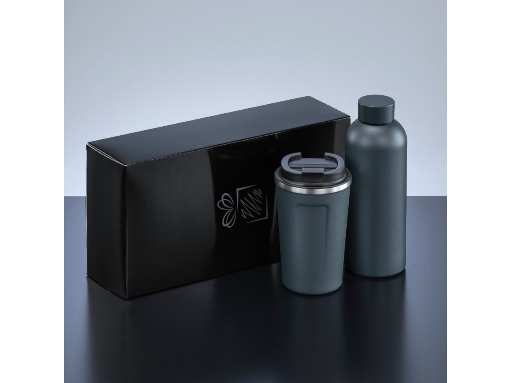 Praktická sada pro outdoorové aktivity, obsahuje hrnek na kávu Nordic (objem 350 ml) a termo láhev na vodu Nordic (objem 500 ml). Termohrnek Nordic poskytuje vynikající termoizolační schopnosti (až 12 hodin chladu, až 6 hodin tepla). Oba produkty jsou vyrobeny z nejkvalitnější nerezové oceli 18/8, odolné vůči kyselinám a uhličitanům, od korejské společnosti POSCO, spojující trvanlivost s elegantní estetikou, odolné vůči kyselinám a uhličitanům. Pevná prášková povrchová úprava obou předmětů zajišťuje odolnost vůči mechanickému poškození a také bezpečné uchopení. Produkty jsou certifikovány pro styk s potravinami a neobsahují BPA. Sada je zabalena v elegantní černé krabičce.Doplňkové parametry