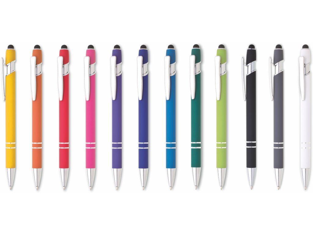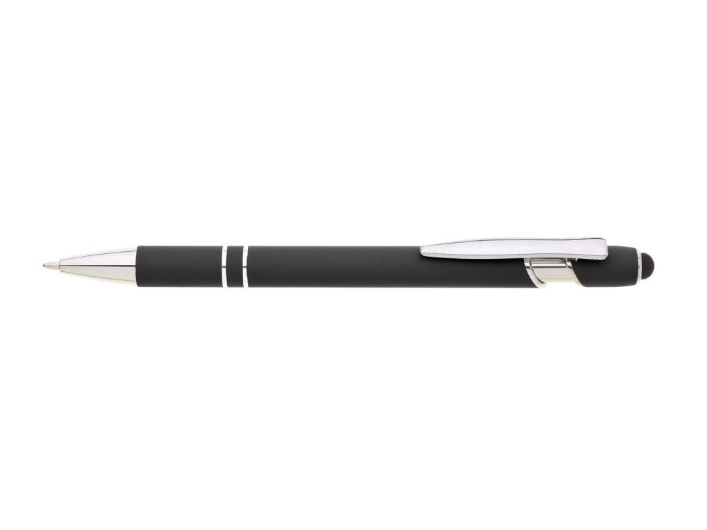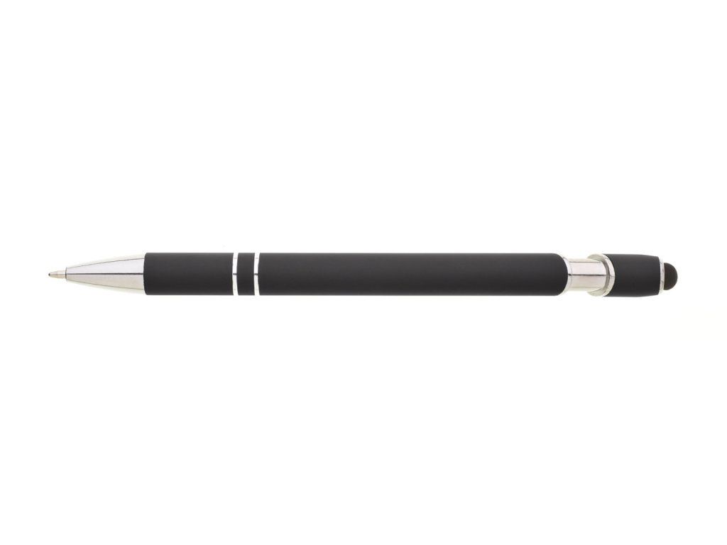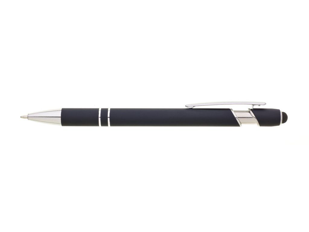 Propiska s touch koncem, měkkým pogumovaným soft povrchem v černé barvě a stříbrnými doplňky včetně dvou ozdobných kroužků. (NATIO)Doplňkové parametry