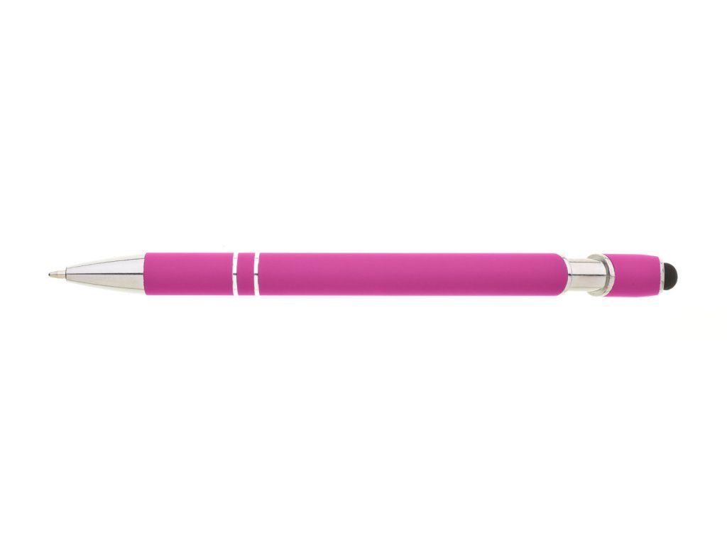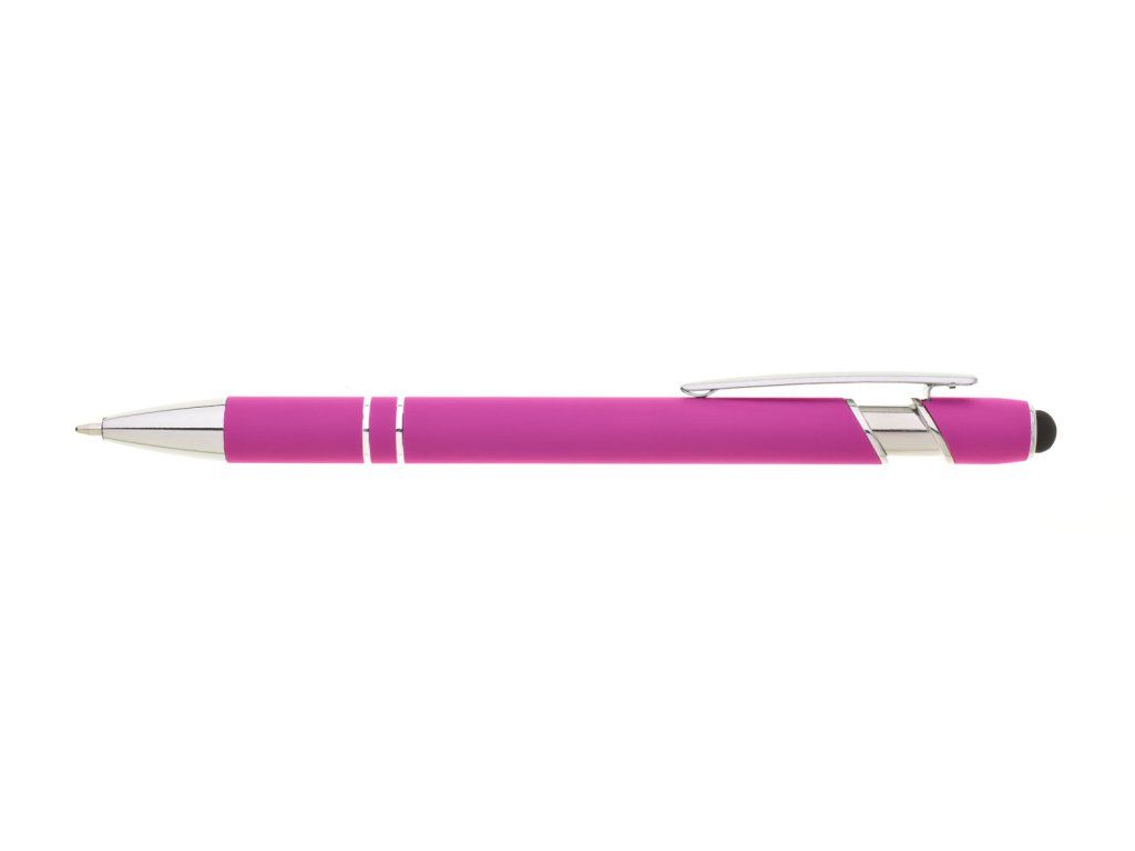 Propiska s touch koncem, měkkým pogumovaným soft povrchem ve růžové barvě a stříbrnými doplňky včetně dvou ozdobných kroužků. (NATIO)Doplňkové parametry