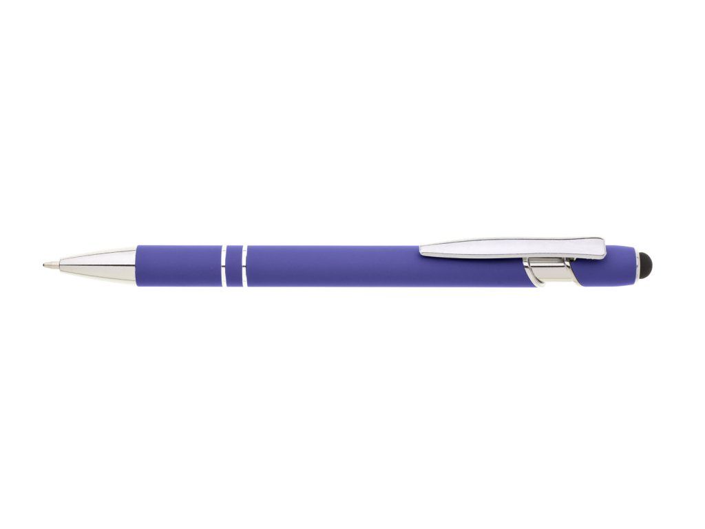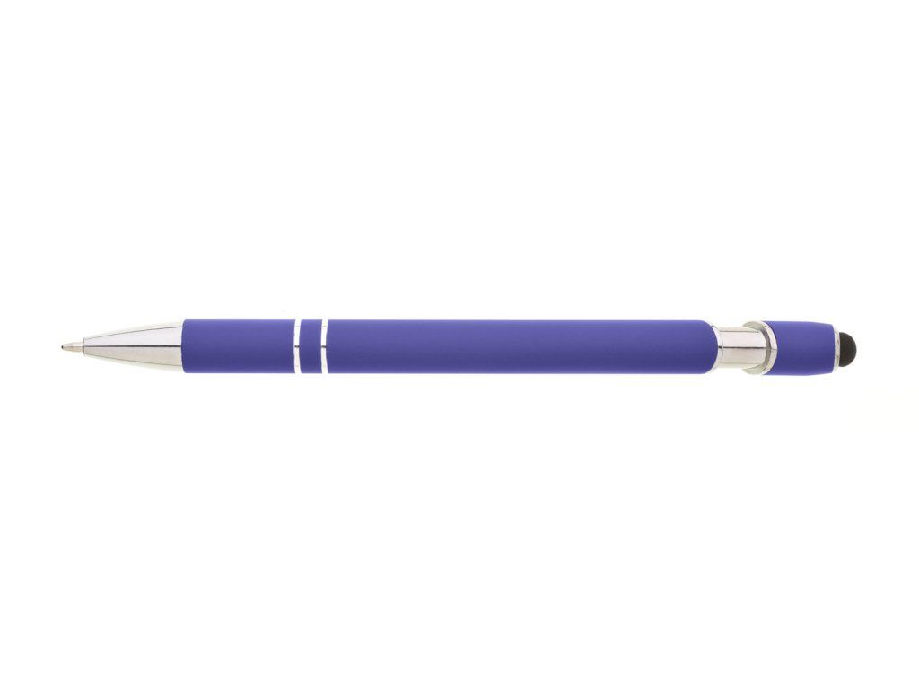 Propiska s touch koncem, měkkým pogumovaným soft povrchem ve fialové barvě a stříbrnými doplňky včetně dvou ozdobných kroužků. (NATIO)Doplňkové parametry