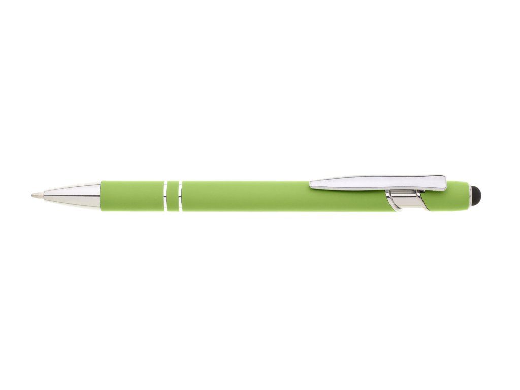 Propiska s touch koncem, měkkým pogumovaným soft povrchem ve světle zelené barvě a stříbrnými doplňky včetně dvou ozdobných kroužků. (NATIO)Doplňkové parametry