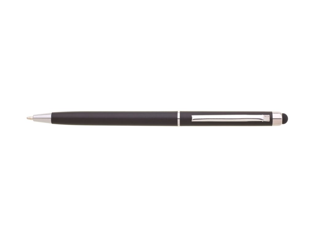 Plastové, kuličkové pero s tenkým, černým tělem a s chromovými doplňky. Pero má otočný mechanismus a na konci těla touch pro dotykové displeje. Náplň X 20, modře píšící.Doplňkové parametry
