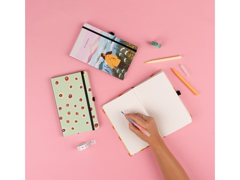 Linkovaný notes v pevných deskách s uzavíráním na gumičku, kapsou na drobnosti a poutkem na tužku. 172 stran na žlutém papíře.Doplňkové parametry