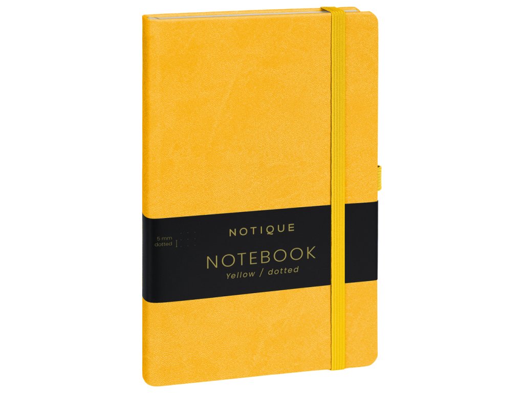 Praktický a lehký tečkovaný notes v trendy žluté barvě má povrch s jemnou strukturou, na který si můžete nechat vyrazit logo společnosti. Notes má pevnou knižní vazbu a zakulacené rohy, poutko na tužku, elastickou gumičku a textilní záložku. Tečky mají 5 mm a jsou na kvalitním žlutém papíře.Doplňkové parametry